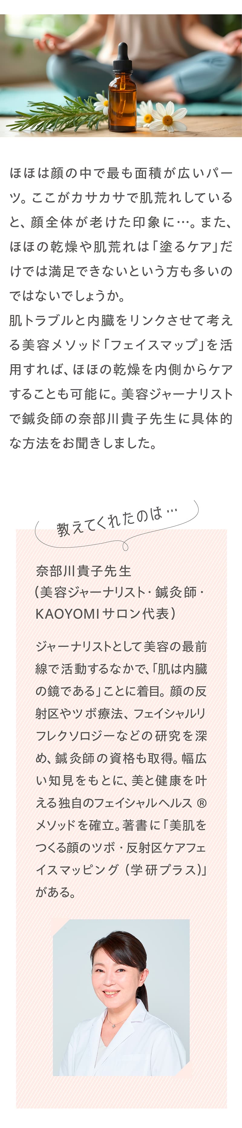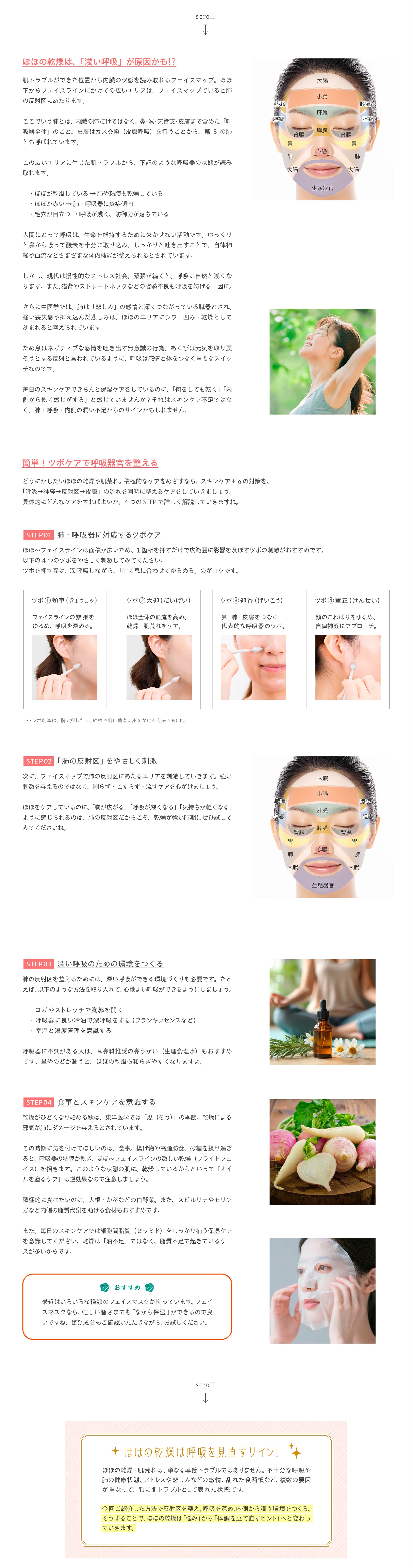 「ほほの乾燥」対策のキーポイントは、呼吸器官を整えるケア!